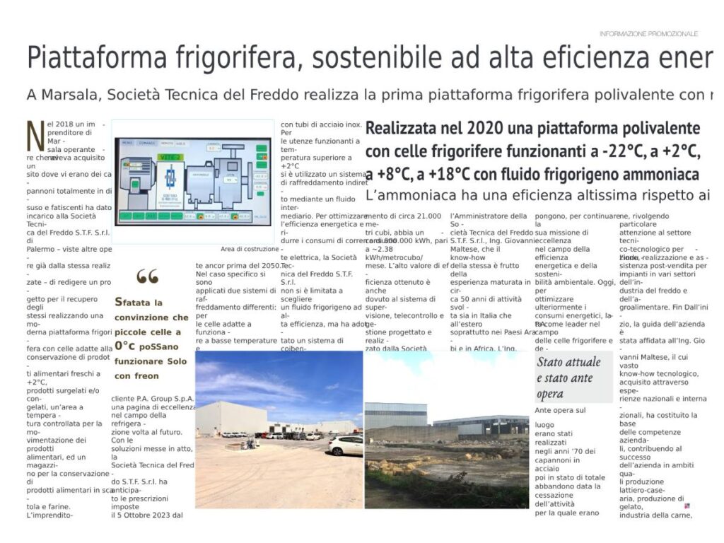 LA SOCIETÀ TECNICA DEL FREDDO, STF SRL, REALIZZA IMPIANTI E CELLE FRIGORIFERE PER LE INDUSTRIE IN SICILIA E NON SOLO. L'AMMINISTRATORE DELEGATO GIOVANNI MALTESE: “I…